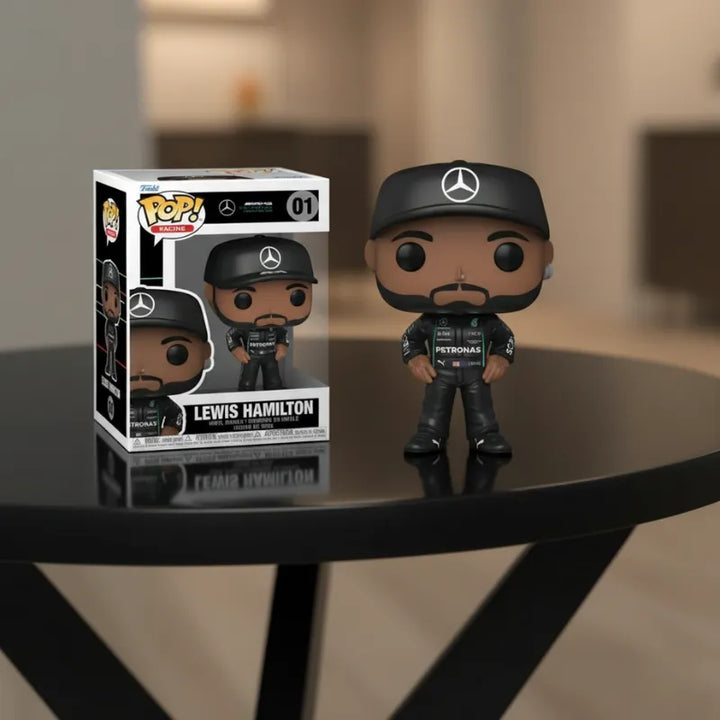 Com cerca de 10 cm de altura, o Funko Pop Lewis Hamilton é produzido em vinil de alta qualidade, com pintura precisa nos detalhes do macacão preto da Mercedes e dos patrocínios oficiais.