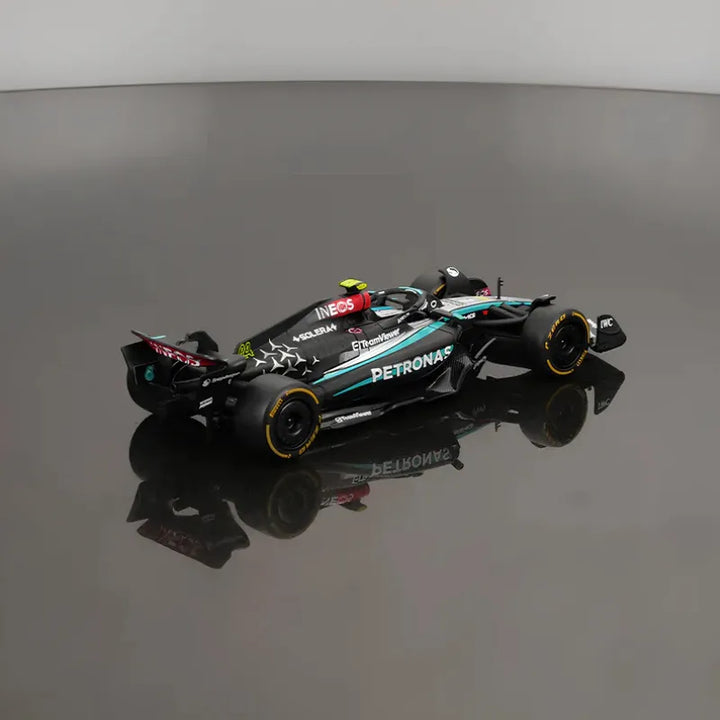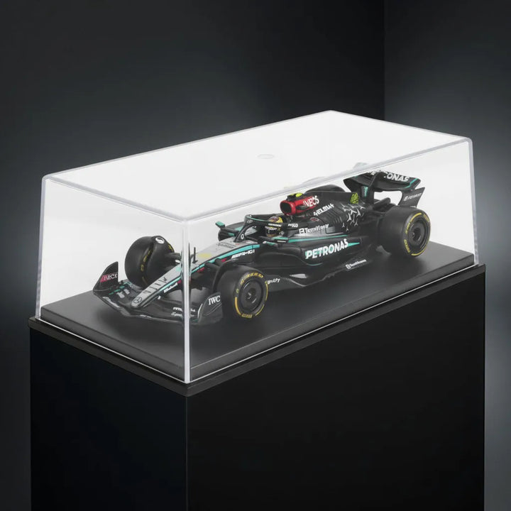 O carro que representa a força da Mercedes na temporada 2024, pilotado por Lewis Hamilton, agora em uma versão de colecionador que une realismo, proteção e exclusividade.